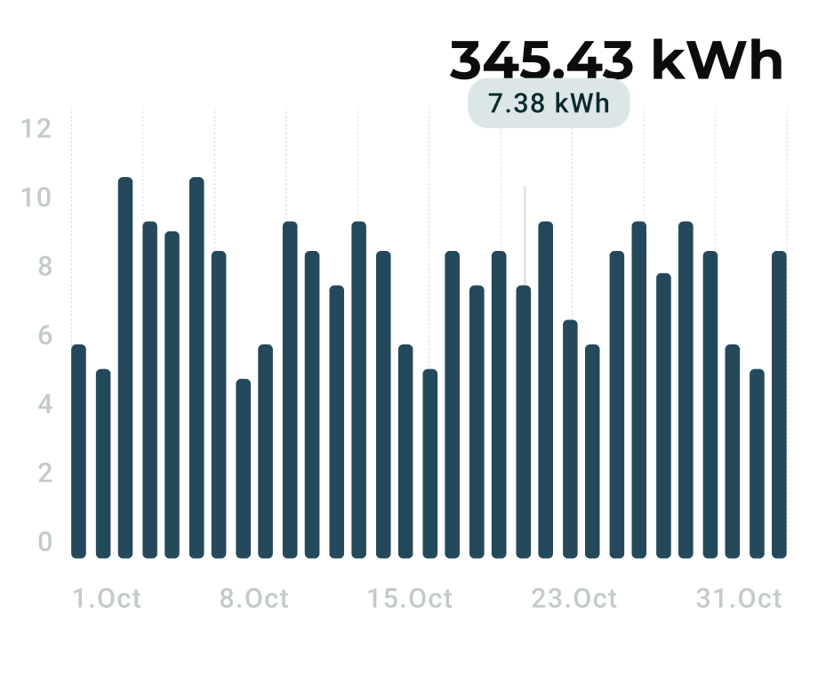 In the app, your historical consumption is broken down into 15-minute, hourly, daily, weekly, monthly and annual reports, which help you to analyze more precisely how much electricity you consume and when.
